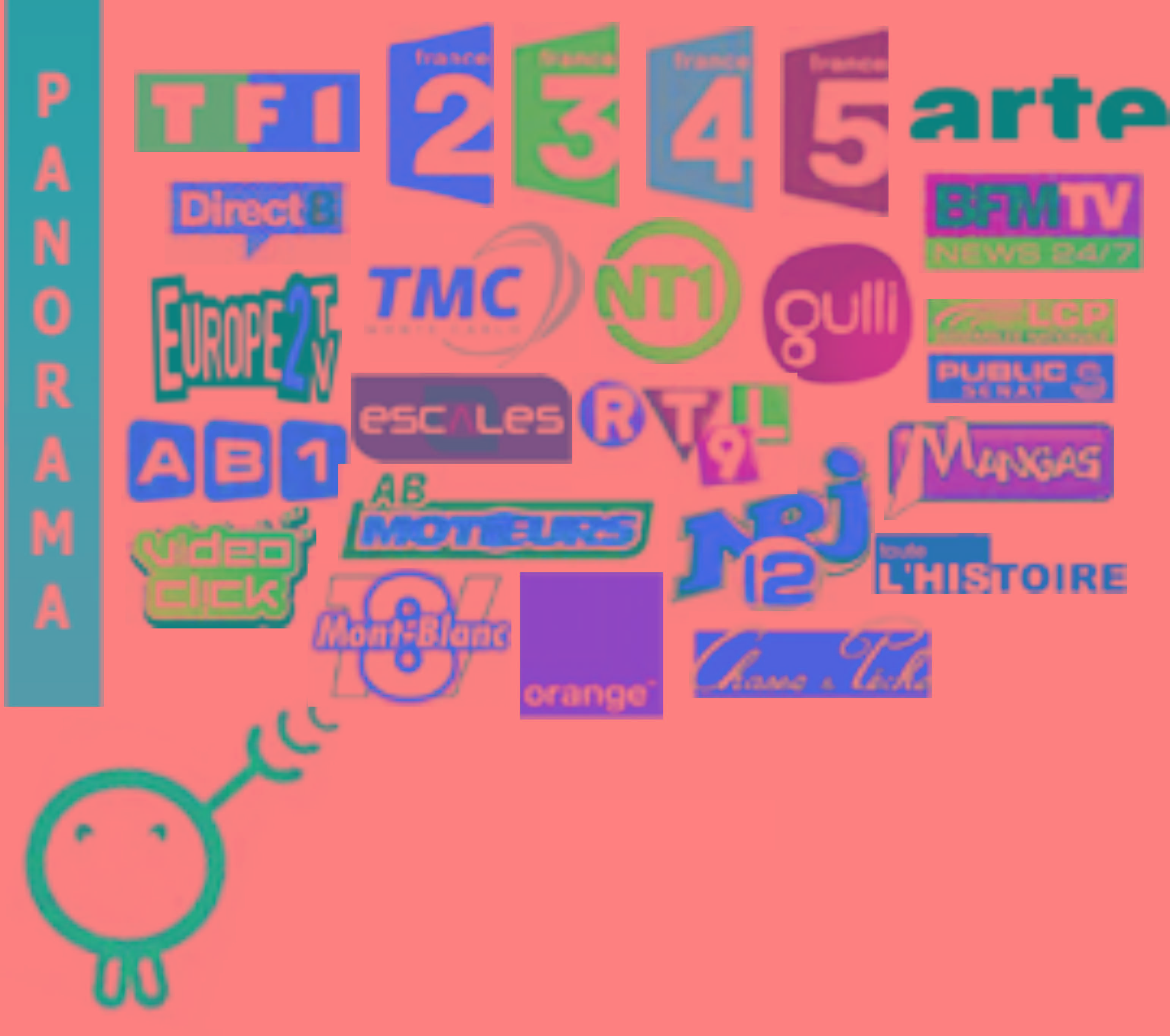 TF1 - France 2 - France 3 - France 4 - France 5 - arte - Direct 8 - TMC - NT1 - Gulli - BFM TV - LCP - Public - AB1 - Escale - RTL 9 - Mangas - Vidéo click - AB Moteurs - NRJ 12 - Toute l'histoire - TV 8 Mont Blanc - Orange - Chasse et Pèche - ... |